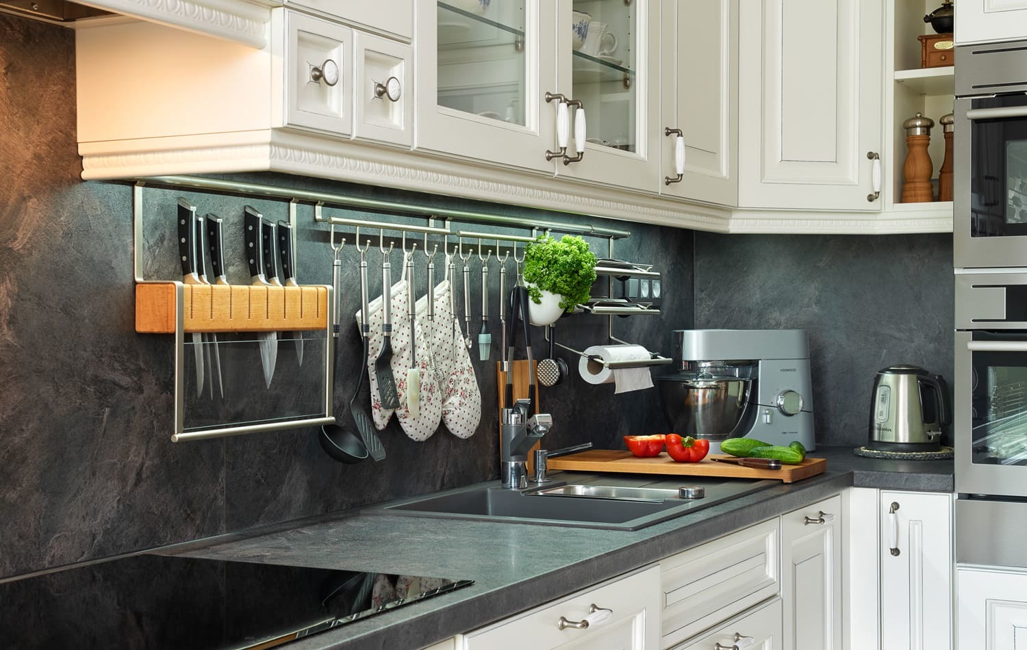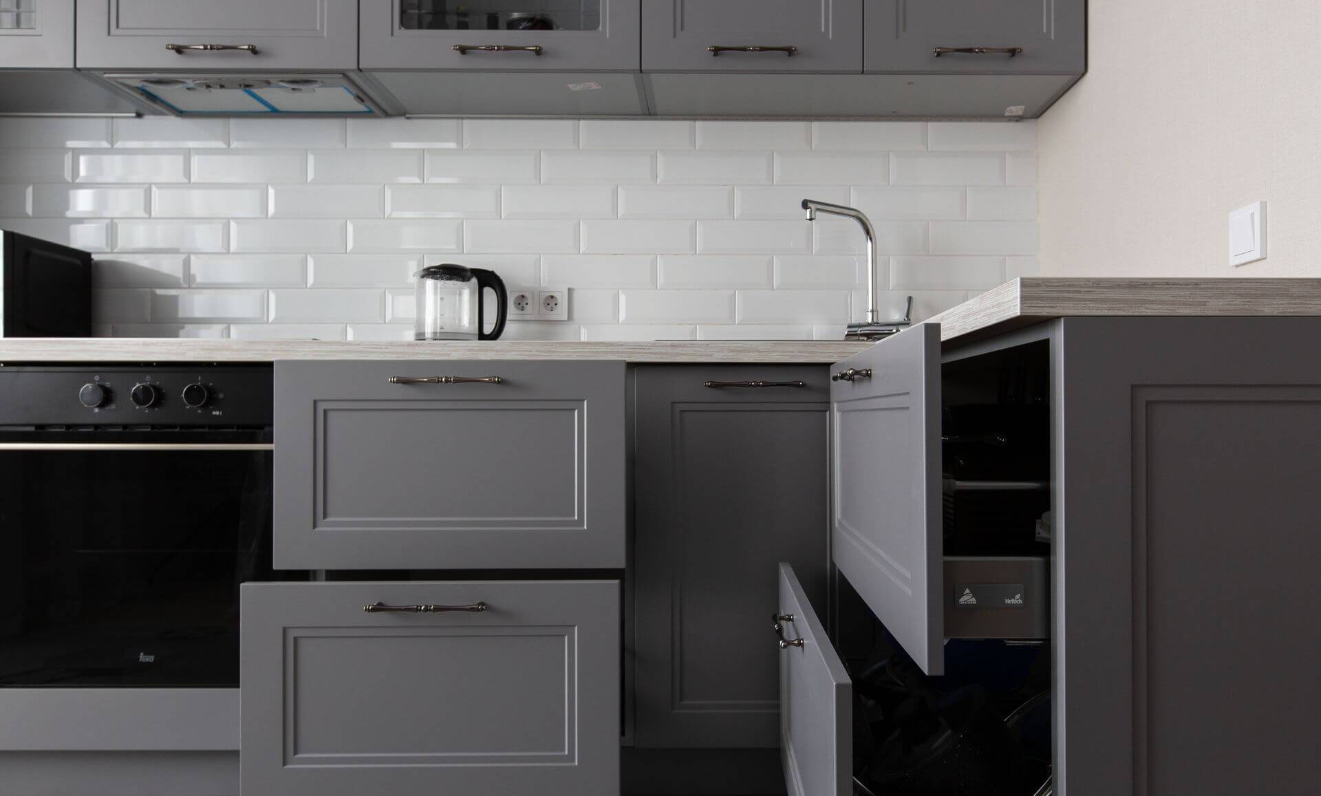 Определиться с конкретной фурнитурой и наполнением кухонных шкафов;